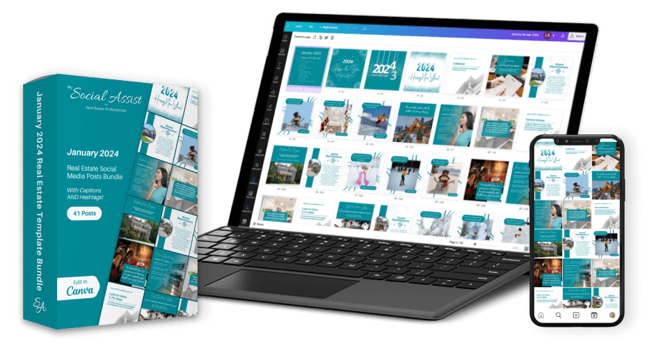 Excel in your real estate career by attracting more clients, securing more listings, and boosting your income. With My Social Assist Canva Templates, you have the power to elevate your professional journey.